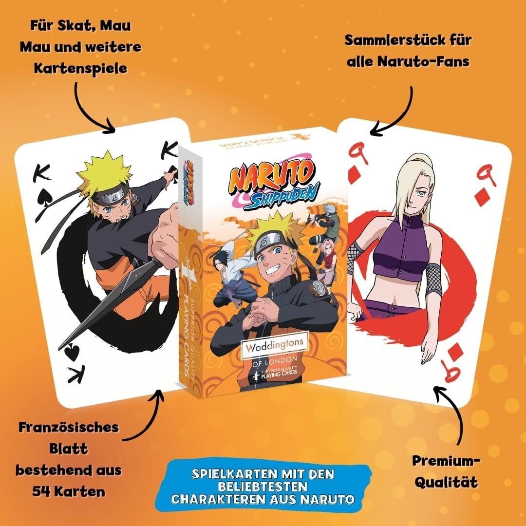Die liebevoll gestalteten Spielkarten mit verschiedenen Motiven der bekanntesten Naruto-Charaktere eignen sich perfekt für junge sowie erwachsene Naruto-Fans - Französisches Blatt mit 54 Spielkarten inklusive 2 Jokern - Geeignet für viele bekannte Spiele wie z...