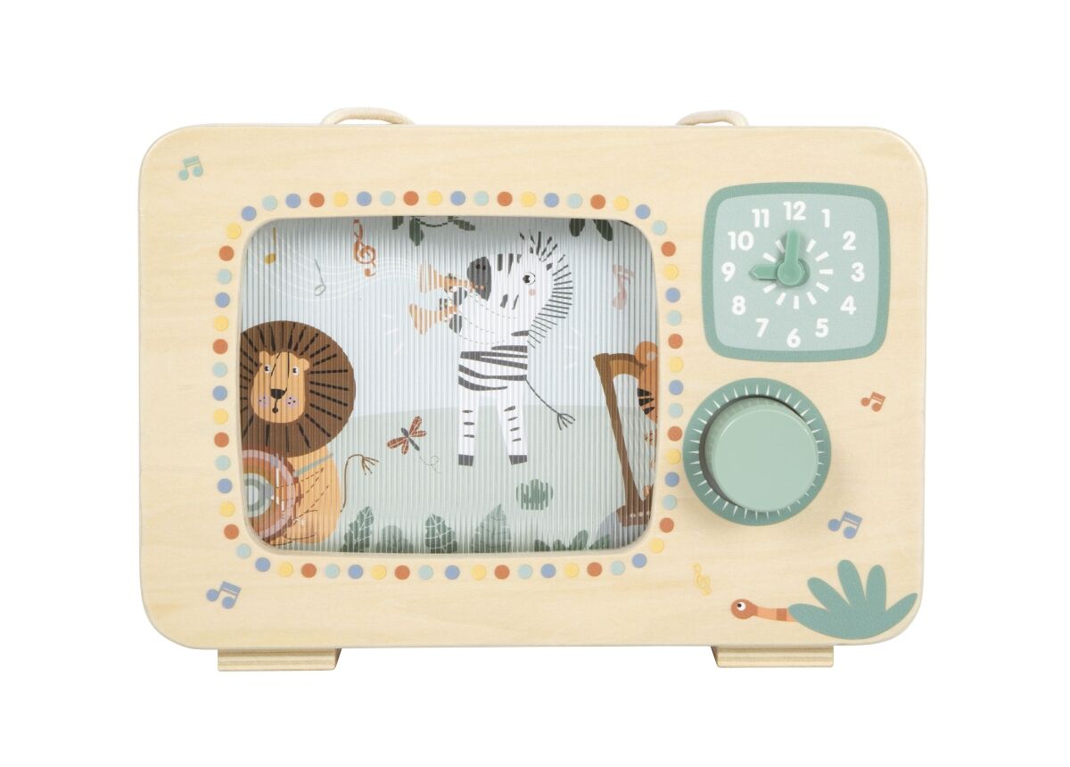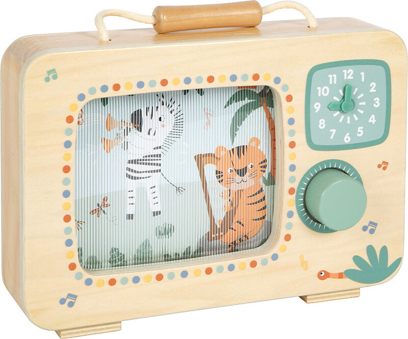 Ein TV-Orchester fürs Kinderzimmer! Mit dieser großen Spieluhr im TV-Format aus FSC 100%-zertifiziertem Holz erleben Kinder, wie das Orchester aus fröhlich musizierenden Safari-Tieren zum Leben erwacht. Einfach den griffigen Knopf drehen, und schon setzen sich...