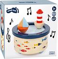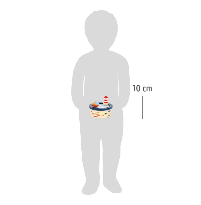 Maritime Spieluhr aus Holz, die Kinder mit der traumhaften Melodie des Schlafliedes "Weißt Du, wieviel Sternlein stehen" sanft in den Schlaf begleitet. Der Leuchtturm und das Segelboot bewegen sich im Kreis, während die Melodie spielt. Die beiden Holzfiguren s...