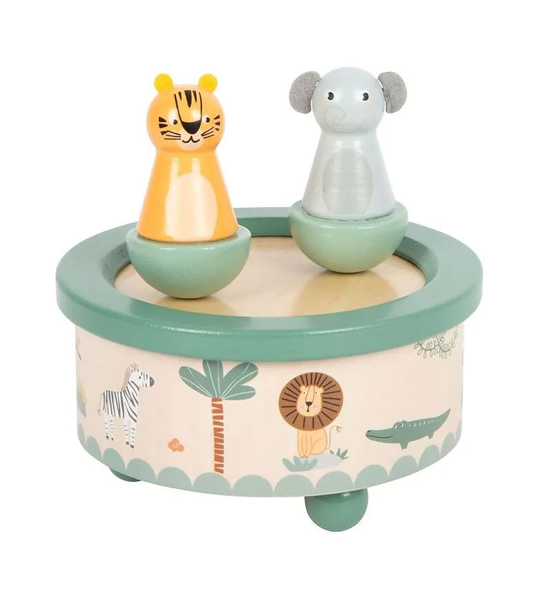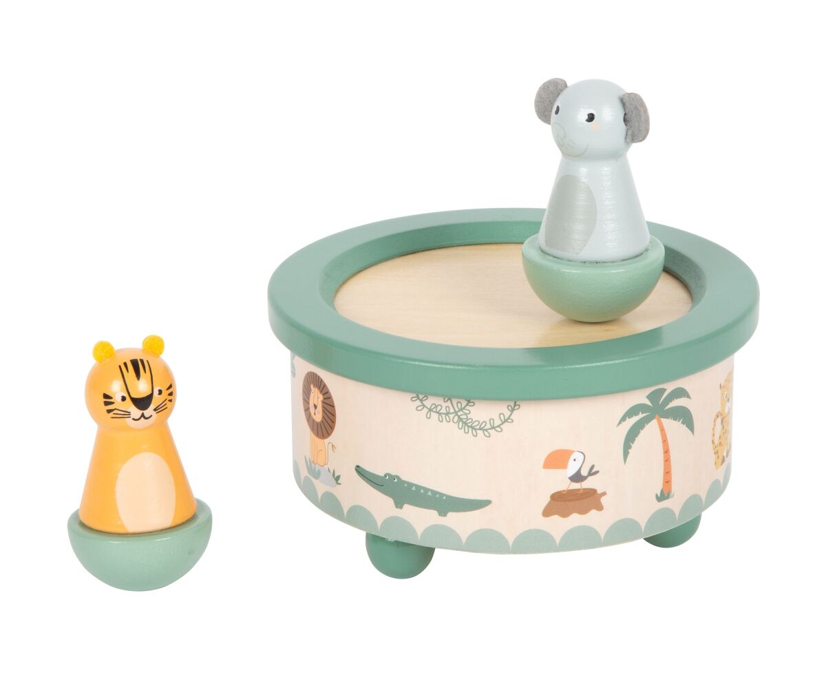 Ein zauberhaftes Highlight für kleine Tierfreunde! Diese liebevoll gestaltete Spieluhr aus FSC 100%-zertifiziertem Holz erweckt mit der Melodie von Twinkle Twinkle Little Star zwei charmante Wildtiere zum Leben. Während Tiger und Elefant sich sanft im Kreis dr...