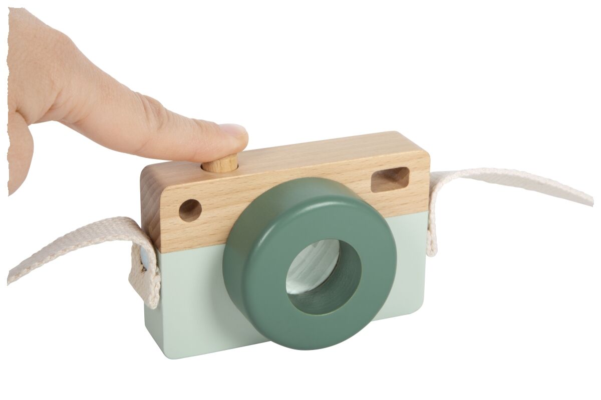 Einmal lächeln, bitte! Diese niedliche Spielzeugkamera aus FSC 100%-zertifiziertem Holz begeistert kleine Abenteurer:innen mit einem tollen Kaleidoskop-Effekt, beweglichem Auslöser-Knopf und praktischer Schlaufe. Ganz ohne Batterien lädt sie Kinder dazu ein, i...