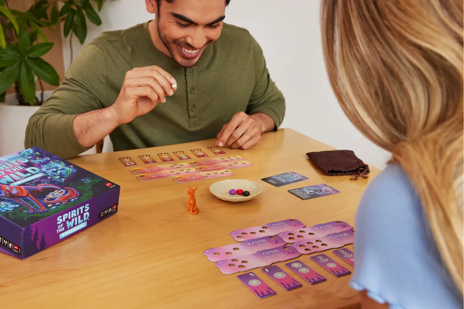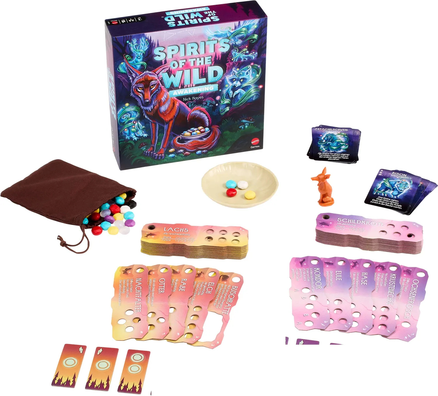 Spirits of the Wild - The Awakening (D) Spirits of the Wild: Awakening ist ein wunderschön gestaltetes Brettspiel für 2 Spieler, bei dem bunte Steine gesammelt werden. Mithilfe von Aktionssteinen und den Kräften magischer Aktionskarten ziehen die Spieler die S...
