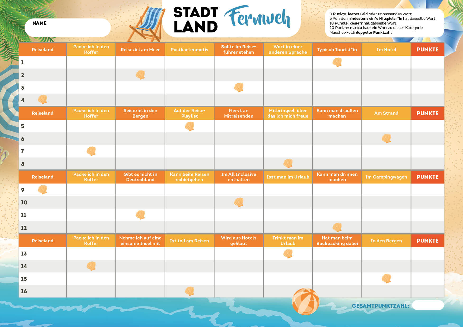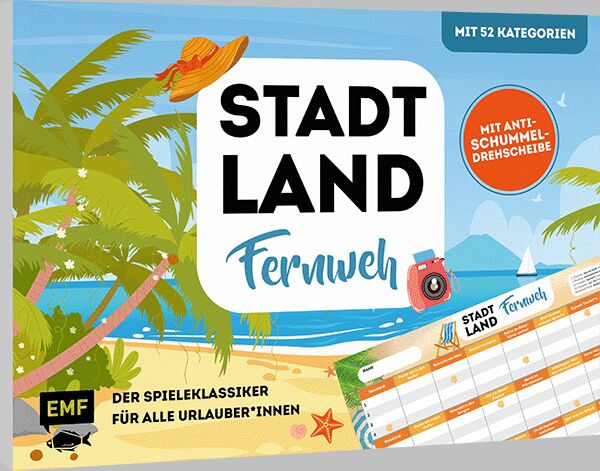 Egal ob auf Balkonien, im Urlaub oder auf dem Weg dorthin - Mit diesem spannenden Stadt, Land, Fernweh-Block bringst du eine große Portion Spaß mit in jede Runde! In 52 Kategorien könnt ihr euer Wissen testen und eure Kreativität unter Beweis stellen. Der Spi...