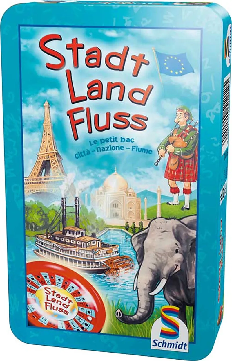 Schmidt Spiele Stadt, Land, Fluss Mitbringspiel in der Metalldose Jeder versucht, zu den vorgegebenen Rubriken die passenden Wörter zu finden. Mit dem praktischen Buchstaben-Roulette kann keiner mehr bei der Auswahl des Anfangsbuchstabens schummeln. Beliebtes ...