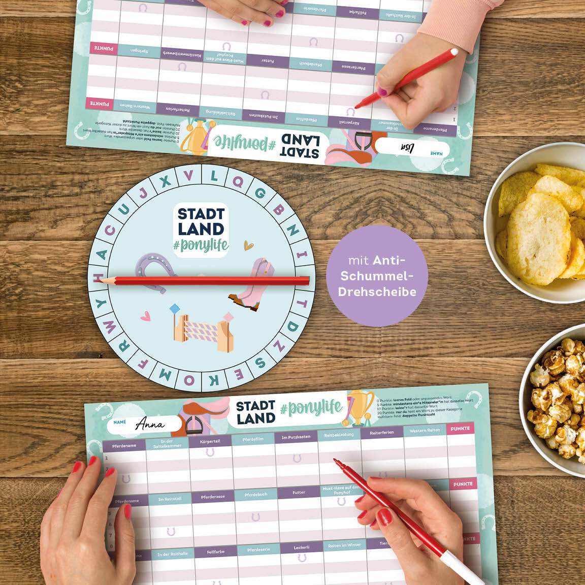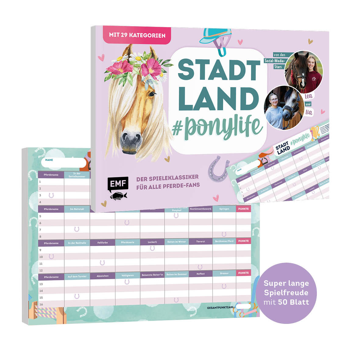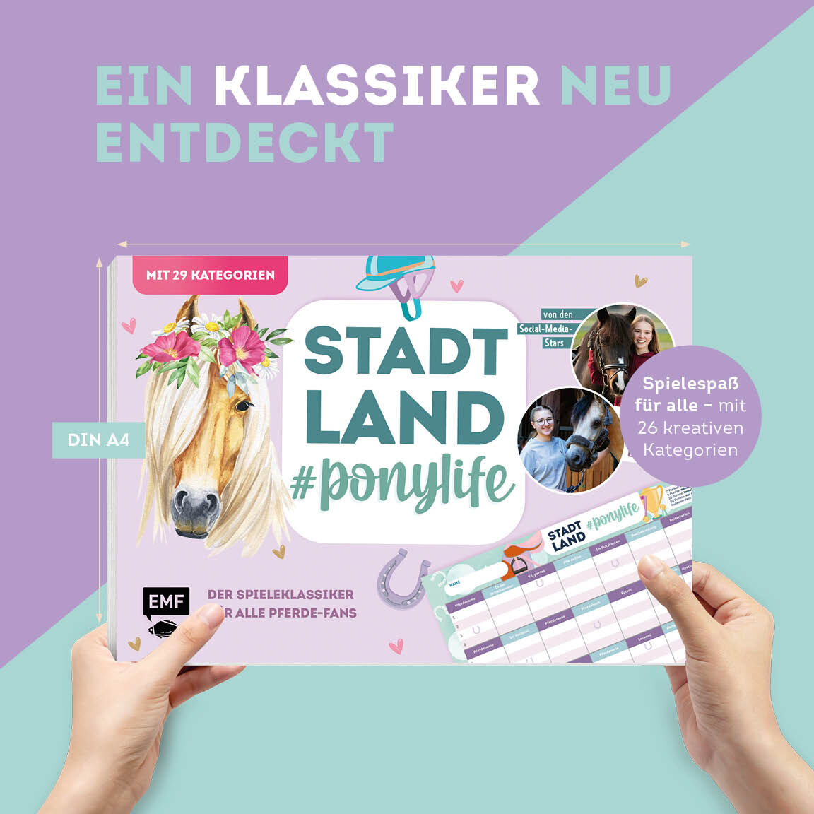 Der Spieleklassiker für alle Pferde-Fans von 8-99 Jahren Egal wo du bist - mit dieser spannenden Stadt, Land, #ponylife-Edition bringst du immer eine große Portion Spaß mit in die Runde! 29 Kategorien sorgen für Abwechslung und laden euch dazu ein, euer Pferd...