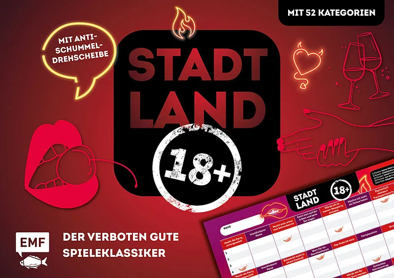 Der Spieleklassiker ab 18 Jahren Egal wo du bist - mit diesem verboten guten Stadt, Land, Ü18-Block bringst du immer eine große Portion Spaß mit in die Runde! In 52 Kategorien könnt ihr euer Wissen rund um Sex, Partys und Verbrechen testen und eure Kreativitä...