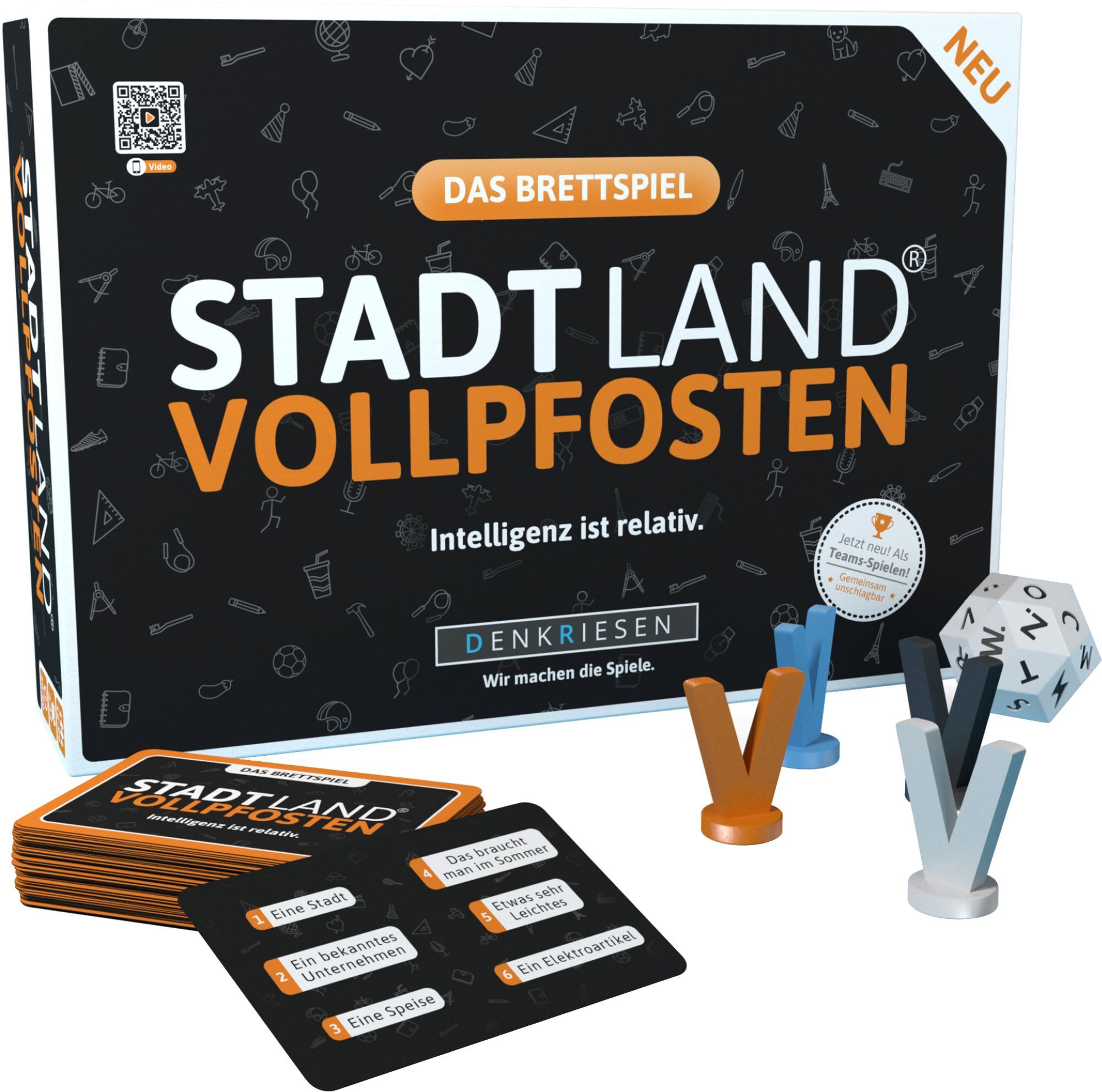 STADT-LAND VOLLPFOSTEN® Brettspiel - Intelligenz ist relativ. Entdecke jetzt das offizielle Brettspiel von STADT LAND VOLLPFOSTEN für einen unvergesslichen Spieleabend mit Familie und Freunden. 360 kreative und lustige Kategorien bringen jeden Hobbydenker ins ...
