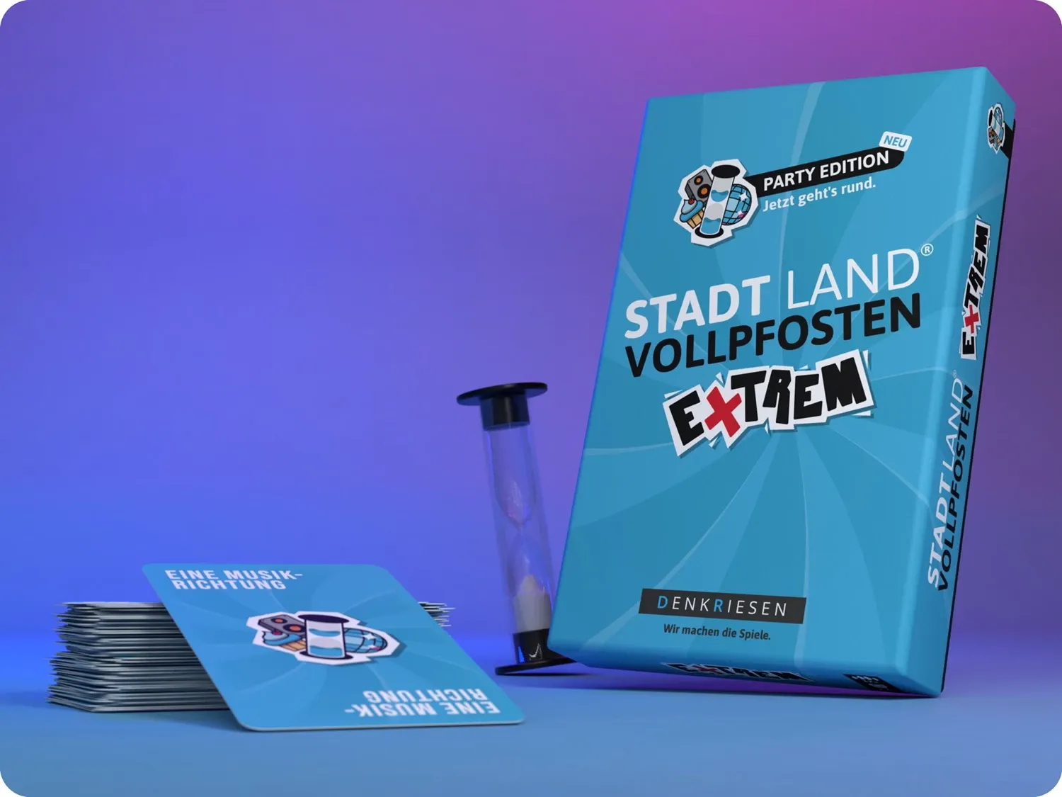 Stadt Land Vollpfosten Party Edition - ''Jetzt geht's rund.'' | Extrem Jetzt wird deine Party EXTREM! Wir haben STADT LAND VOLLPFOSTEN noch einen fiesen Dreh verpasst. Ihr sucht ein passendes Wort zu einer Kategorie. Kennt man ... Aber! Bestimmte Buchstaben mü...