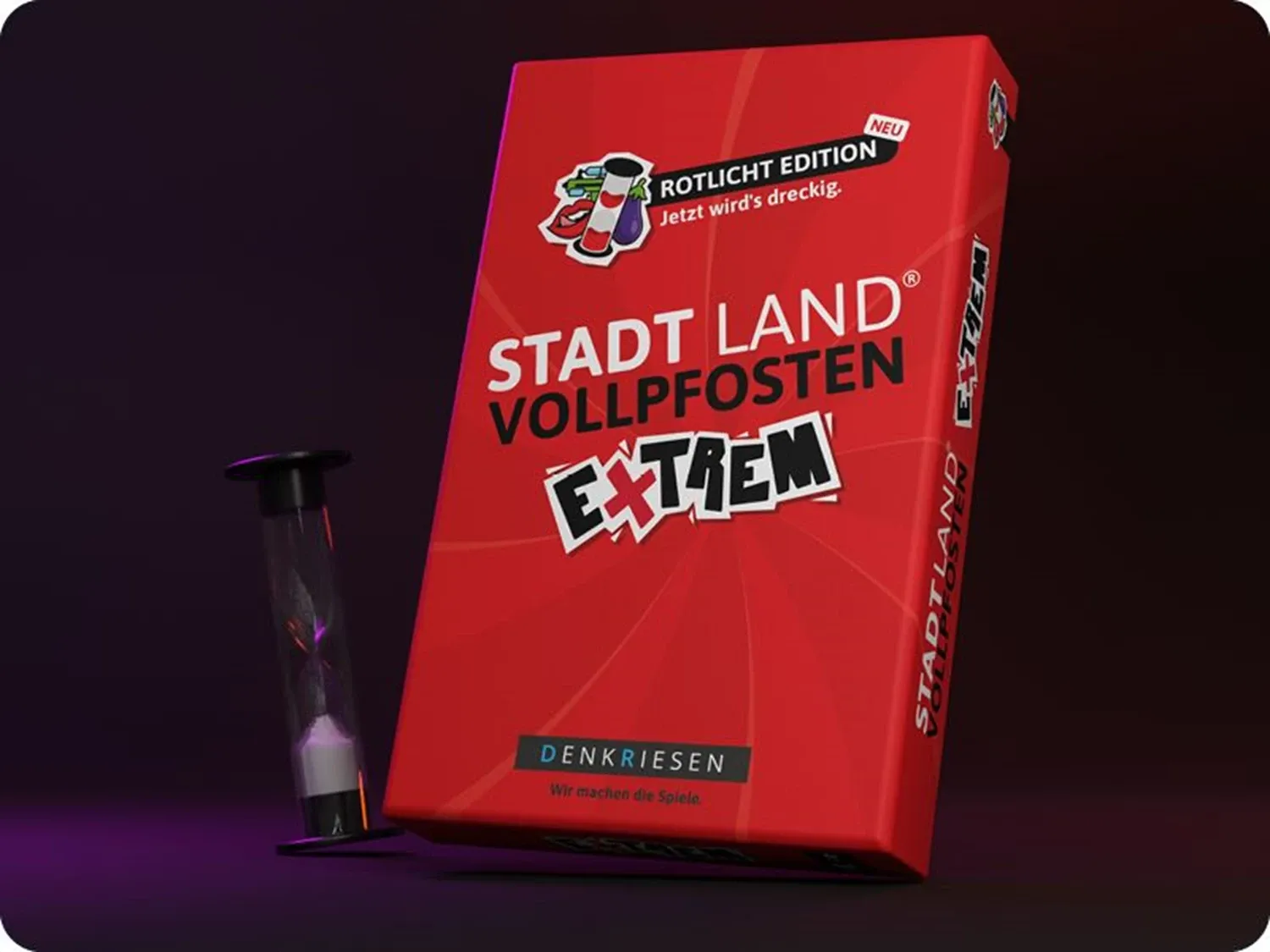 Stadt Land Vollpfosten Rotlicht Edition - ''Jetzt wird's dreckig.'' | Extrem Jetzt wirds EXTREM dreckig! Wir haben STADT LAND VOLLPFOSTEN noch einen fiesen Dreh verpasst. Ihr sucht ein passendes Wort zu einer Kategorie. Kennt man ... Aber! Bestimmte Buchstabe...