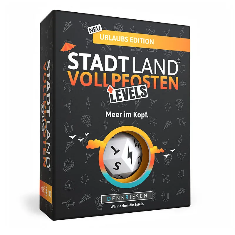 Stadt Land Vollpfosten® Urlaubs Edition - ''Meer im Kopf.'' | Levels Bei dieser urlaubsreifen Variante von STADT LAND VOLLPFOSTEN geht's hoch hinaus! Findet passende Begriffe zum gewürfelten Buchstaben und erklimmt so die Levels. Wer zuerst oben st, gewinnt!...