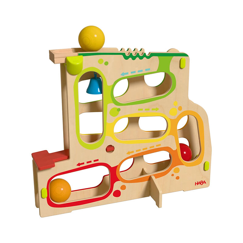 Aus der Verpackung nehmen, Fuß aufstecken und schon gehts direkt in den Spielspaßmodus mit der HABA Stand-Kugelbahn Kullerrum. Bereits fertig montiert, kommt die Kugelbahn aus der Verpackung. So können allerkleinste Kuller-Fans ab 1 Jahr die mitgelieferten 3 g...