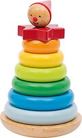 Kannst du schon die Ringe von groß nach klein sortieren? Durch den abgerundeten Boden wackelt der Turm allerdings beim Stapeln hin und her und erschwert das Ganze. Dies fördert nicht nur die Motorik, sondern auch die Auge- Hand-Koordination.