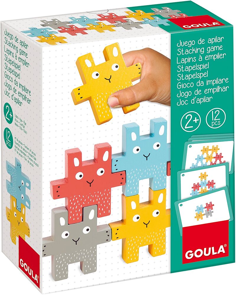 Entzückendes Häschen-Stapelspiel von Goula! Diese 12 niedlichen Kaninchen aus Holz können durch ihre geometrische Form auf verschiedene Art gestapelt werden. Die 5 beidseitig illustrierten Vorlagenkarten geben vor, wie die Häschen gestapelt werden sollen und b...