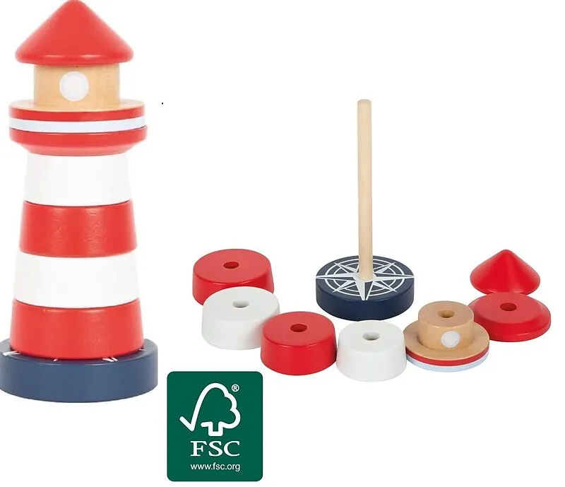 Für kleine Leuchtturmwärter der ideale Stapel- und Steckspaß im maritimen Look! Dieser Stapelturm aus robustem Holz motiviert schon die Kleinsten dazu, die sieben verschiedenen Stapelelemente des Leuchtturms der Größe nach zu sortieren und aufeinander zu steck...