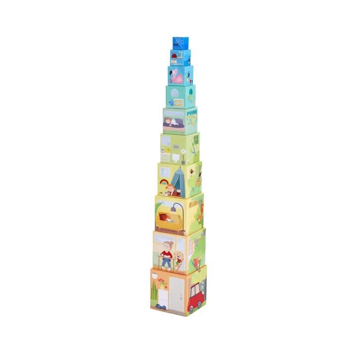 Schaffe, schaffe, (Hoch-)Häusle baue Wie hoch dieses Zuhause werden kann, finden Kinder heraus, wenn sie die Würfel der Größe nach aufeinanderstapeln. Anschließend startet die Hausbesichtigung jede Etage bietet ringsum tolle Details zum Entdecken. Extra-Spieli...