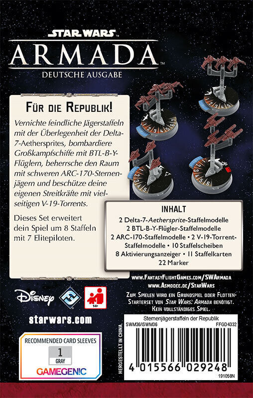 Der Erweiterungspack Sternenjägerstaffeln der Republik führt die Macht des gefürchteten Sternenjägerkorps der republikanischen Flotte in die Spielwelt von Star Wars: Armada ein und erweitert deine Staffeloptionen um Jedi-Fliegerasse und Elite-Klon-Piloten.