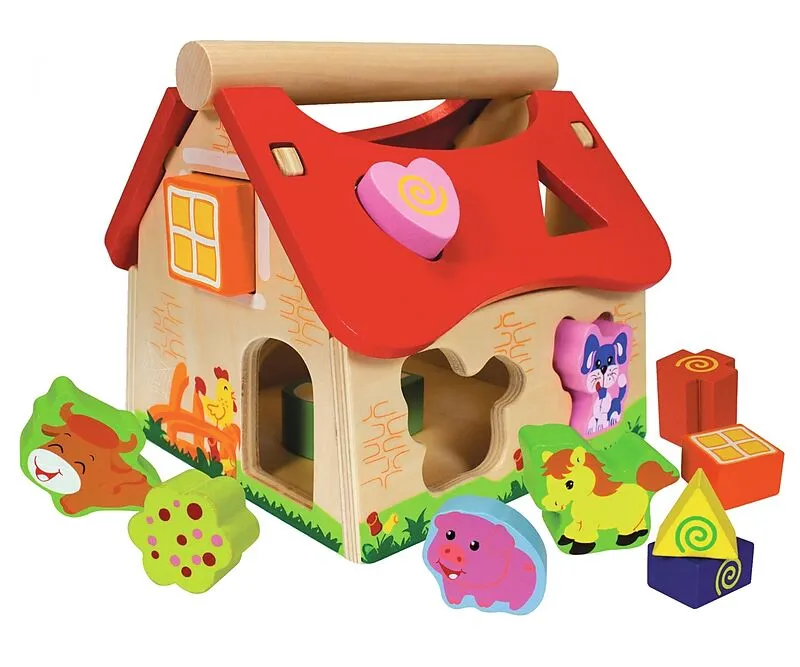 Mit dem hochwertigen Eichhorn Steckhaus im Bauernhof Design werden Kinder spielerisch mit unterschiedlichen Formen und Farben vertraut gemacht. Das Haus hat viele Öffnungen in die jeweils nur einer der Steine passt. Durch das abnehmbare Dach können die Holztei...
