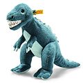 Thaisen T-Rex Dino ist 35 cm groß und in kuschelweichem Plüsch in der Farbe Petrol gefertigt. Die stehende Position wird durch in die Beine eingearbeitete Granulatsäckchen unterstützt. Sein Bauch und seine Drachenzacken sind in Türkis gehalten. Seine weißen Zä...