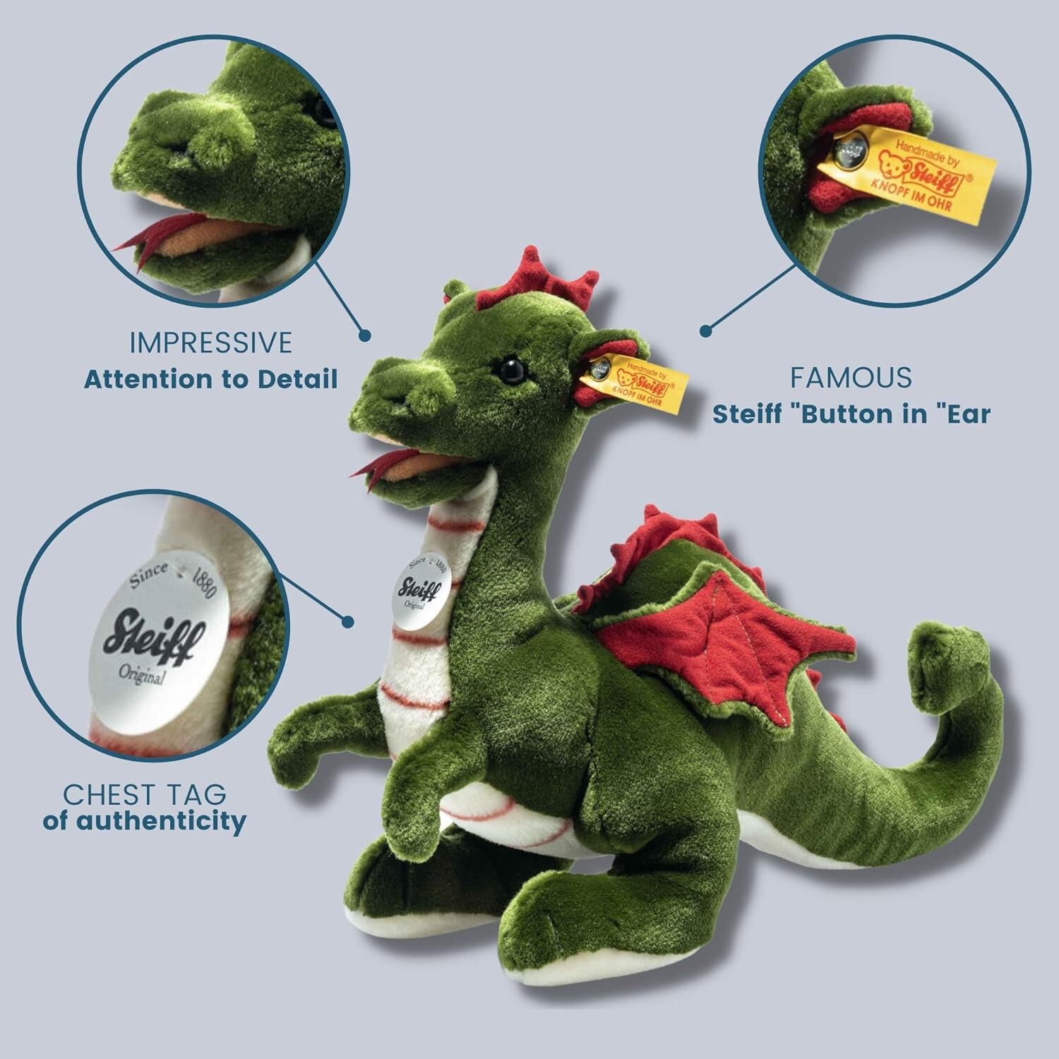 32 cm groß ist der freche Rocky Drache. Super süß steht der grüne Drache mit seinen roten Flügeln und den roten Zacken auf dem Rücken da und ist aus kuschelweichem Plüsch gefertigt. Der Drache nimmt Kinder mit in eine Welt voller Zauber und Magie. Dabei erlebe...