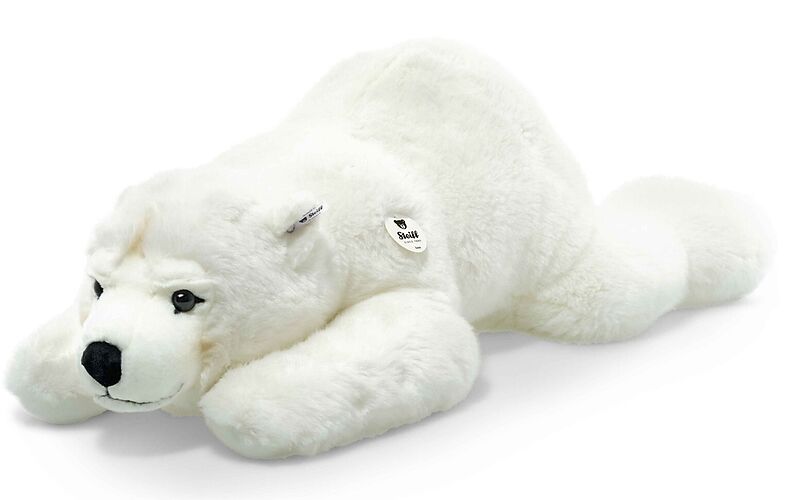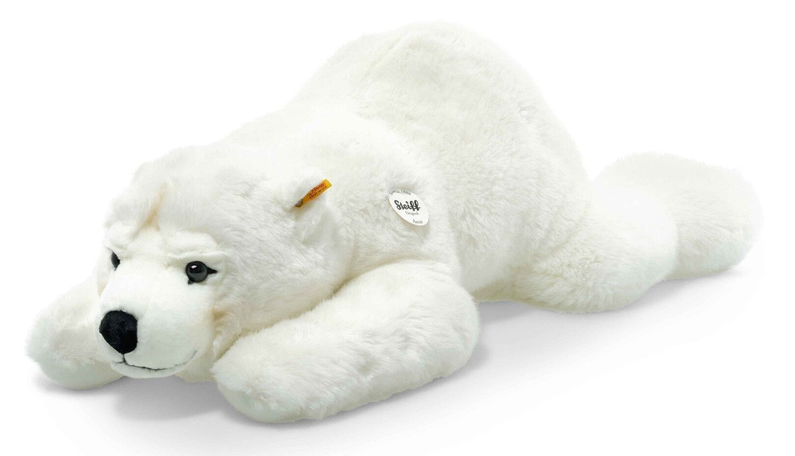 Arco Eisbär hat eine stolze Größe von 90 cm und sein Fell ist aus kuschelweichem Plüsch. Der nette Eisbär macht es sich gern im Kinderzimmer bequem und freut sich auf viele gemeinsame Abenteuer. - Besonders sicher verarbeitet - Mit Edelstahl Knopf im Ohr - Hoc...