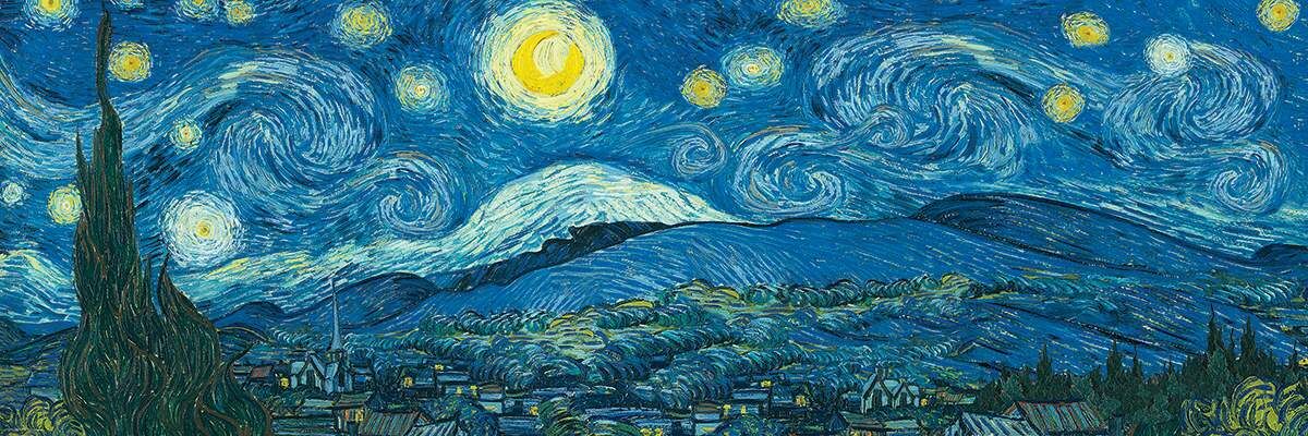 Sternennacht Panorama van Gogh, Vincent Premium Qualität: Eurographics verspricht von Anfang an herausragende Qualität. Unsere Puzzles werden in Deutschland, USA oder Kanada mit europäischen Blueboard hergestellt und wir benutzen dabei innovative Smart-Cut Tec...