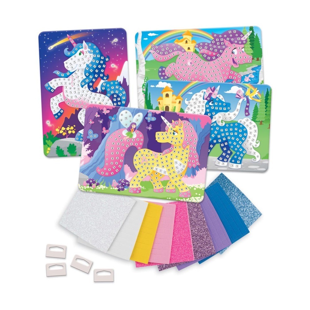 Sticky Mosaics Sticky Mosaics Glitzer Einhorn Sticky Mosaics - Das Sortiment für kreative Spielerlebnisse. Mit den selbstklebenden Moosgummi- und Glitzerplättchen in unterschiedlichen Farben und Formen können Kinder in wenigen Stunden fantasievolle Mosaikbilde...