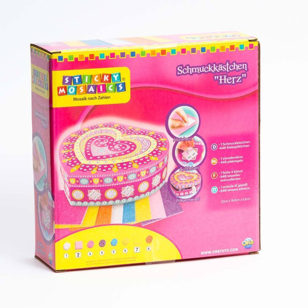 Sticky Mosaics Schmuckkästchen Herz Mit Sticky Mosaics entstehen tolle Wohnaccessoires in Mosaiktechnik. Gestalte eine glitzernde Herzbox für deine kleinen Schätze. Inhalt: Herzbox mit Spiegel, ca. 500 funkelnde Fliesenplättchen und Juwelen (selbstklebend). Ab...