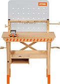 Stihl Kinderwerkbank aus Holz Früh übt sich! Und womit würde das mehr Freude machen, als mit dieser detailverliebten Kinderwerkbank von STIHL? Die Werkbank ist aus Holz gefertigt und kommt bereits mit Werkzeug aus Holz. Außerdem gibt es Halterungen für die kom...