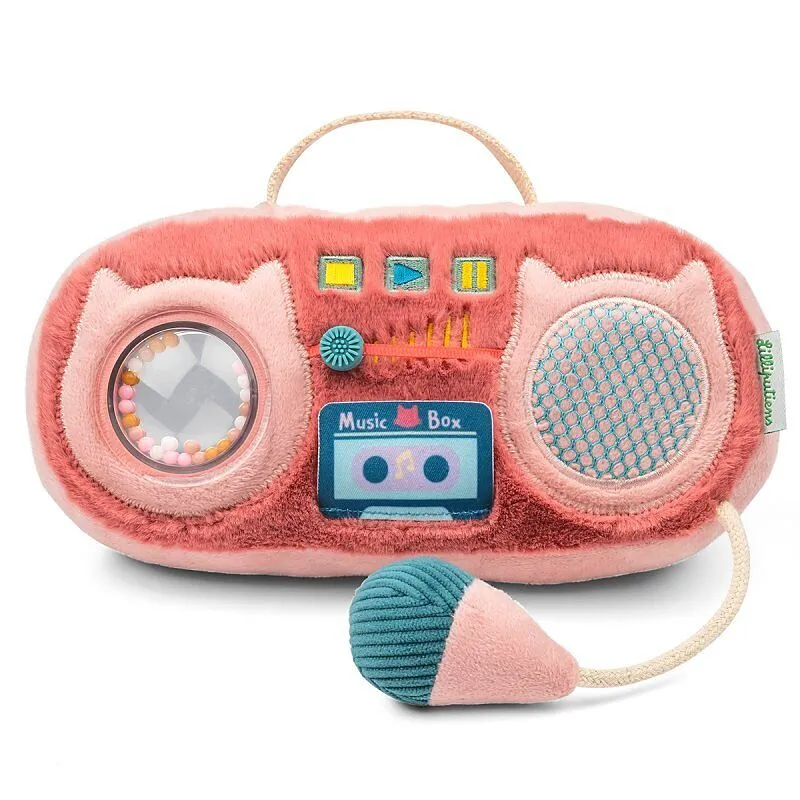 Ein lustiges kleines Stoffradio zur Anregung der Sinne des Babys! Beim Spielen gibt es fröhliche Geräusche von sich, die die Aufmerksamkeit wecken und das Gehör fördern. Weich und originell in seiner Form lädt dieses Radio das Baby ein, zu entdecken, seine Sin...