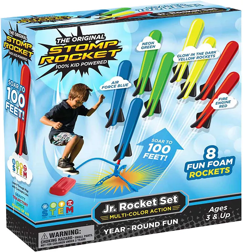 Die Stomp Rocket-Schaumstoffraketen mit 4 verschiedenen Farben und Effekten. Einfach auf das Startkissen treten und die Stomp Rocket Jr. hebt ab. Flughöhe bis zu 30 m. Der Winkel der Startrampe ist verstellbar. Natürlicher Antrieb mit Druckluft - ganz ohne Bre...28 Kunden haben diesen Artikel kürzlich gekauft.