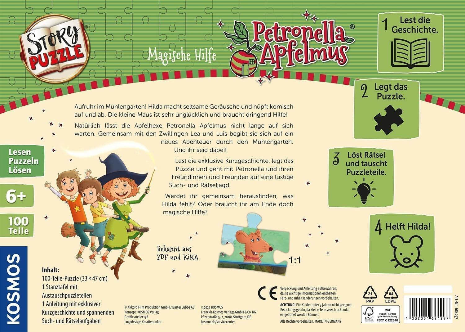 Die Haselmaus Hilda braucht Hilfe! Apfelbaumhexe Petronella Apfelmus und ihre Freunde sind sofort zur Stelle und erleben ein neues Abenteuer im Mühlengarten. Kurzgeschichte lesen, Puzzle legen, Rätsel lösen und mit extra Austauschpuzzleteilen das Puzzlebild pa...