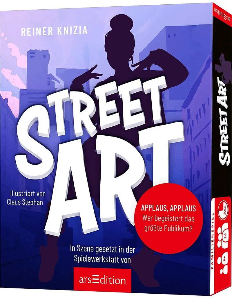 Street Art Street Art - Werde zur größten Attraktion der Straße! Lichter, Beats und staunende Gesichter: Beim Kartenspiel Street Art trittst du als Feuerspuckerin, lebende Statue oder Jongleurin gegen die Konkurrenz an und kämpfst um das größte Publikum. Spiel...