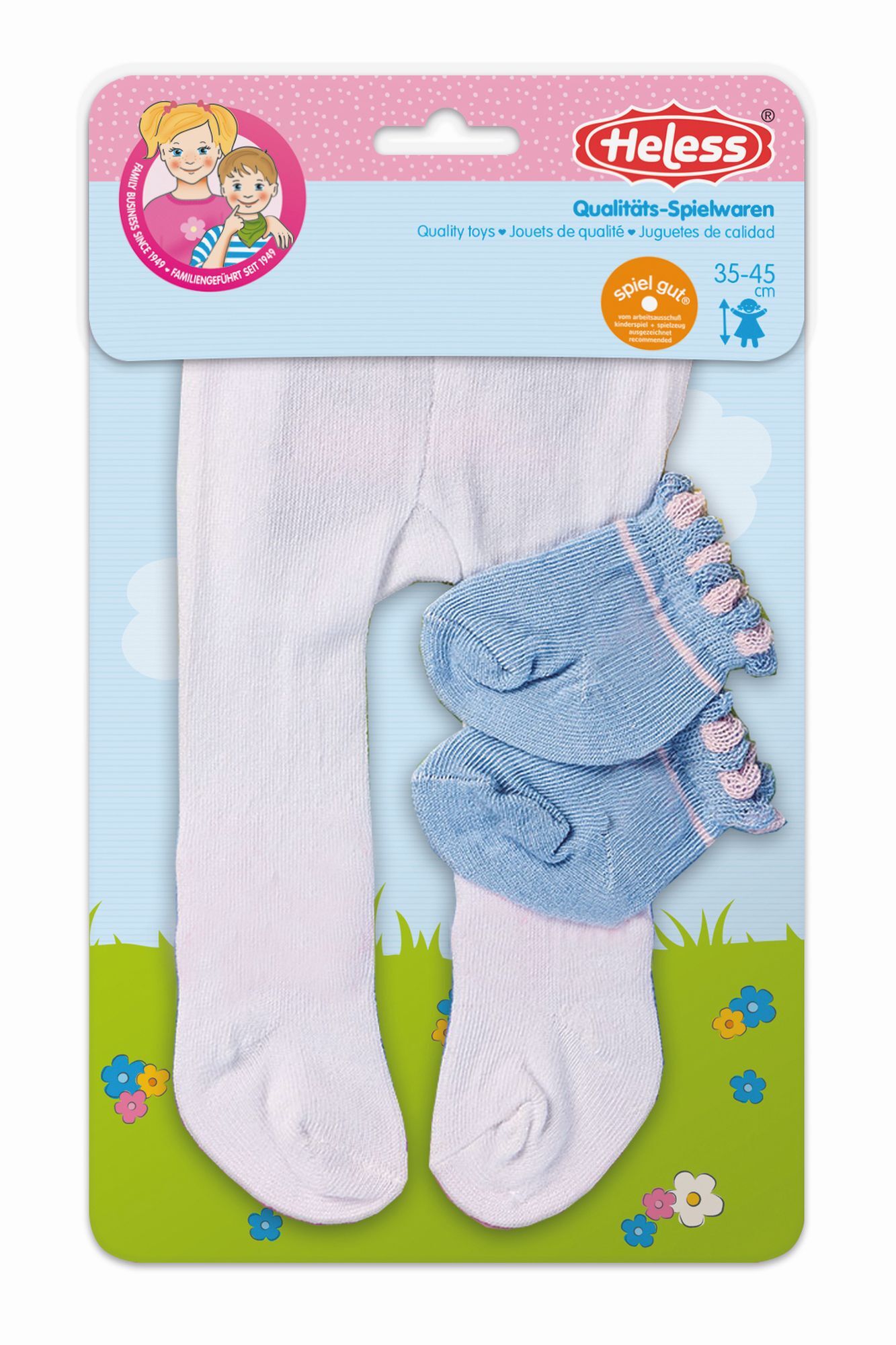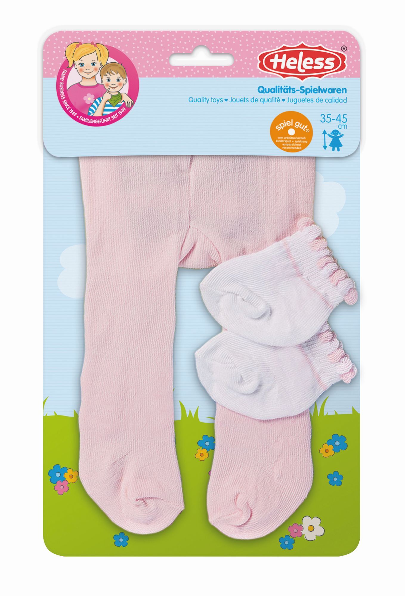 Diese hübsche Puppenstrumpfhose darf bei keiner Puppenmutter fehlen. In drei Farbvarianten rosa, hellblau und weiss erhältlich.