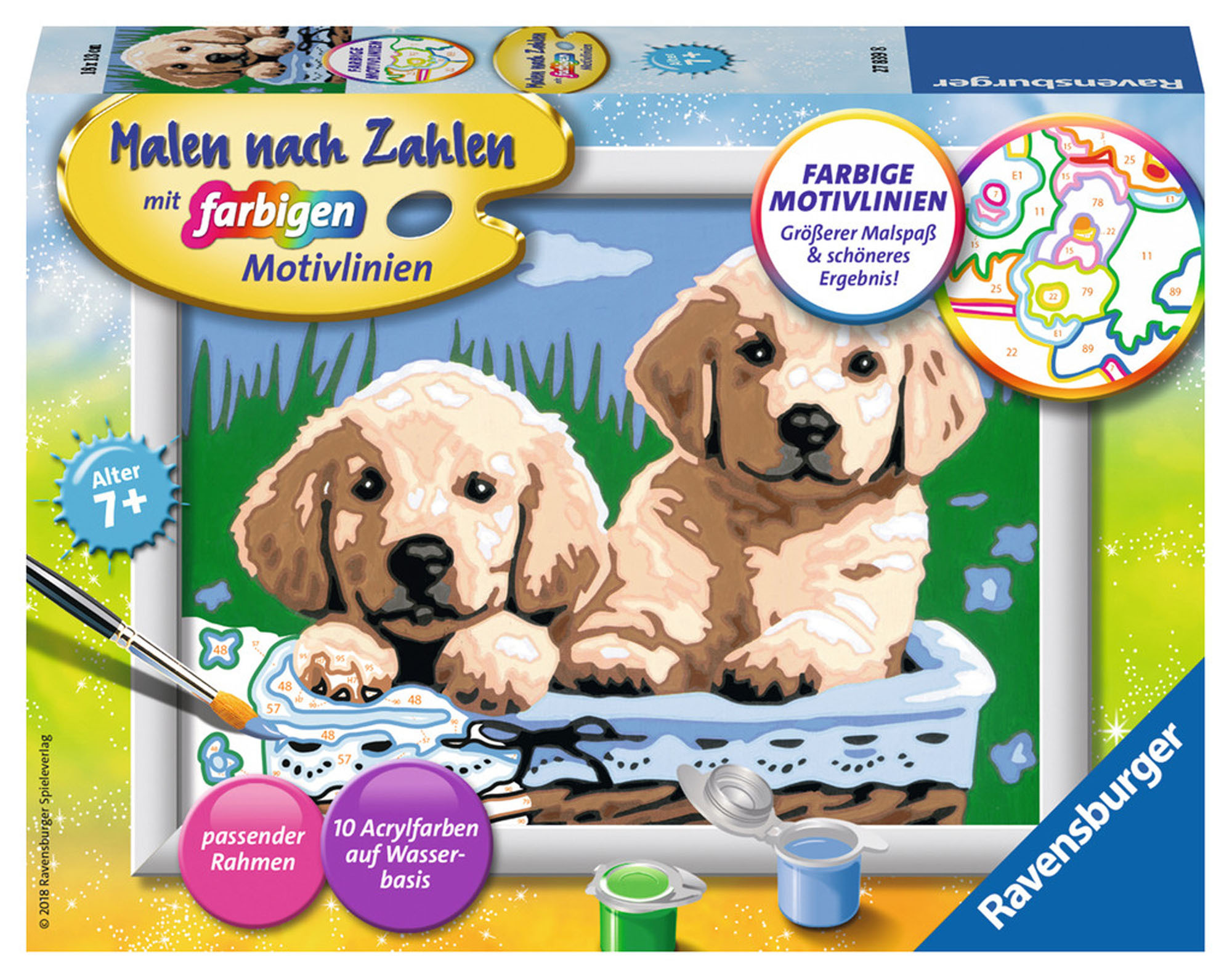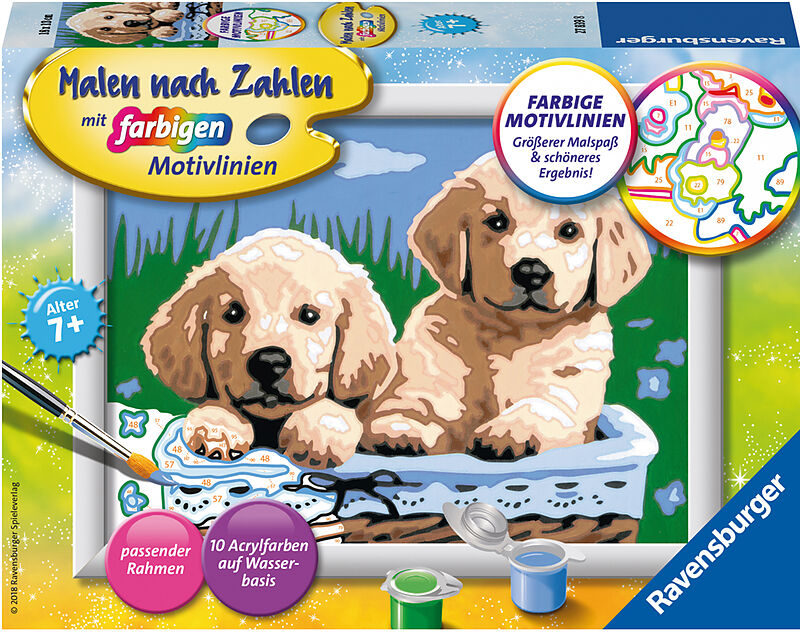 Dank der farbigen Motivlinien, welche die Malfelder umranden, können die Kinder das ganze Motiv und die benötigten Farben schneller erkennen. Zudem hat der Pinsel eine gute Führung. So entsteht nach und nach ein perfektes Bild. Am Ende stehen Freude, Stolz und...