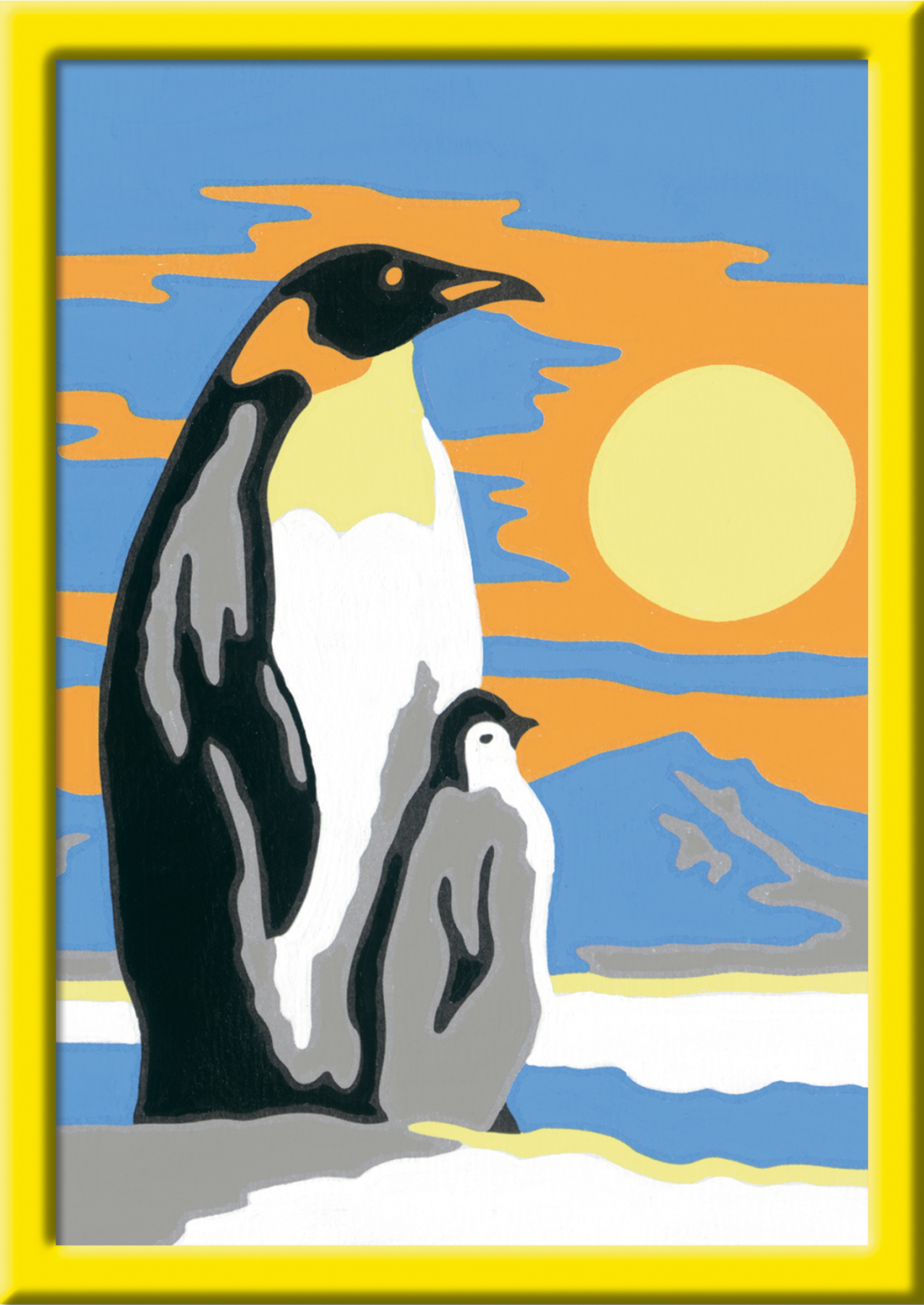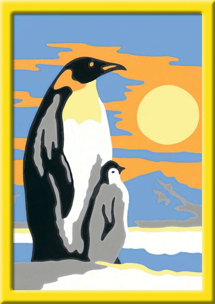 Süße Pinguine Farbige Motivlinien: Größerer Malspaß & schöneres Ergebnis! Dank der farbigen Motivlinien, welche die Malfelder umranden, können die Kinder das ganze Motiv und die benötigten Farben schneller erkennen. Zudem hat der Pinsel eine gute Führung. So e...
