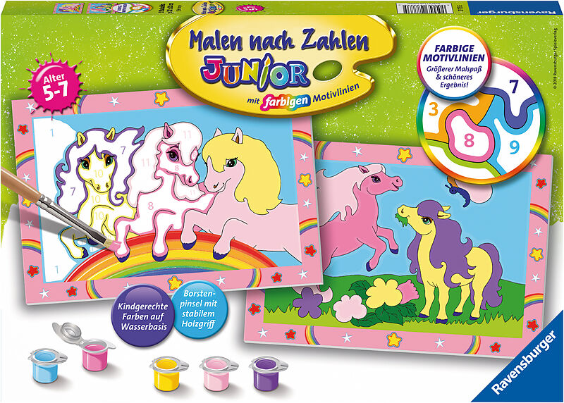Dank der farbigen Motivlinien, welche die Malfelder umranden, können die Kinder das ganze Motiv und die benötigten Farben schneller erkennen. Zudem hat der Pinsel eine gute Führung. So entsteht nach und nach ein perfektes Bild. Am Ende stehen Freude, Stolz und...