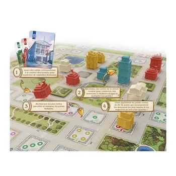 Une concurrence immobilière insoupçonnée fait rage au sein de ce joli quartier résidentiel ! Construisez vos demeures sur les parcelles les plus prestigieuses mais n'oubliez pas les critères du plan de la ville pour cumuler des points bonus et remporter la vic...