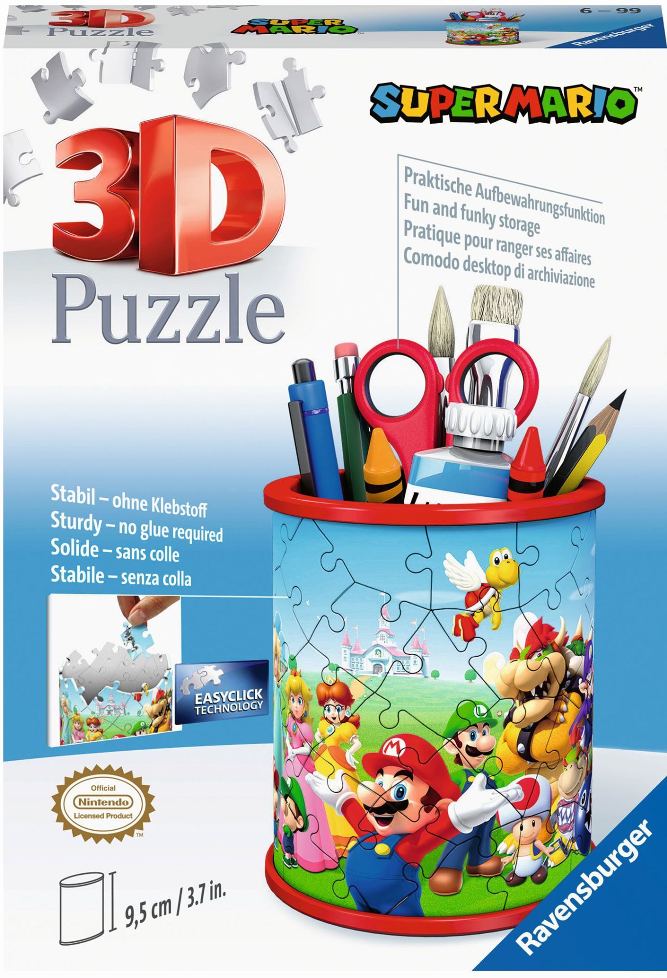 Mit diesem 3D Puzzle Utensilo kannst du Super Mario jetzt auch zu Hause toll in Szene setzen! Der superpraktische Stiftehalter im Super Mario Retro Design ist nicht nur ein dekorativer Blickfang auf jedem Schreibtisch, sondern bietet auch reichlich Platz für a...