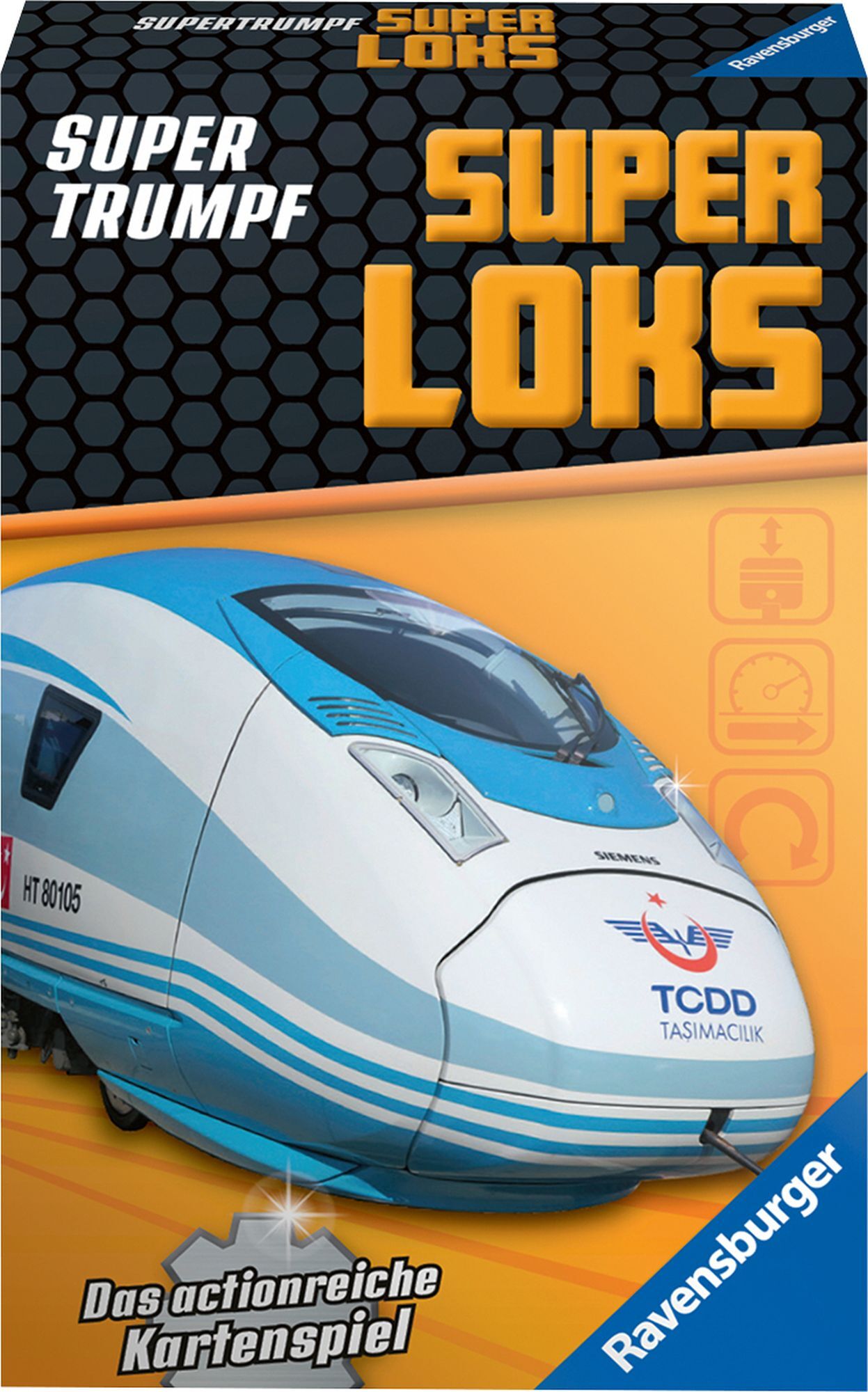 Supertrumpf ist das optimale Geschenk ab 7 Jahren. Kartenspiel und Sammelspaß für alle Auto- und Technik-Interessierte.32 coole Abbildungen und viele Infos über die Modelle begeistern die Fans: Welches Zug hat die höchste Leistung Und welche Lok ist am längste...