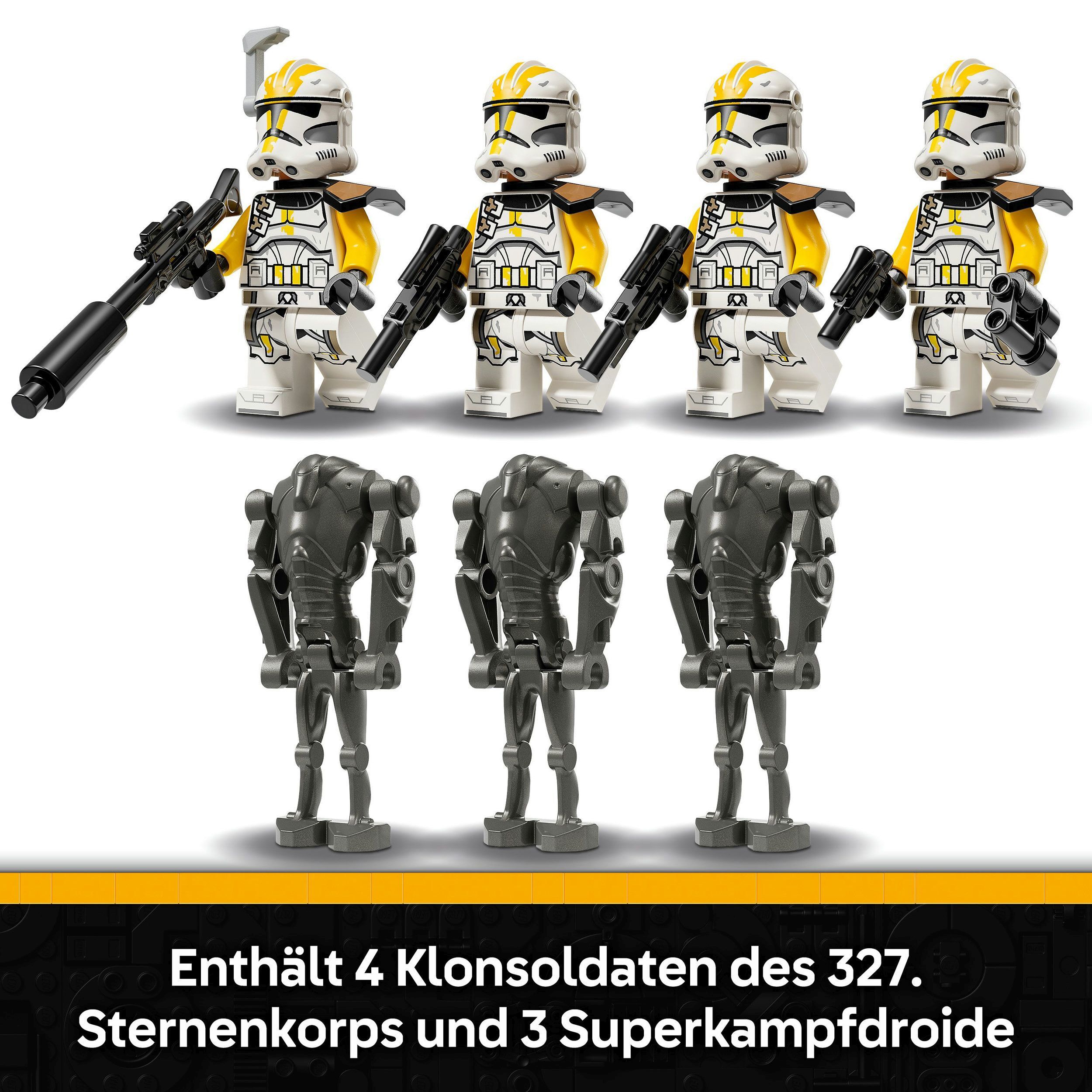 LEGO® Star Wars 75431 Klonsoldaten des 327. Sternenkorps Battle Pack Dieses Battle Pack (75431) zu LEGO Star Wars: Die Rache der Sith bringt actiongeladenen Spielspaß für junge Fans ab 7 Jahren. Mit vier LEGO Star Wars Minifiguren der Klonsoldaten des 327. St...