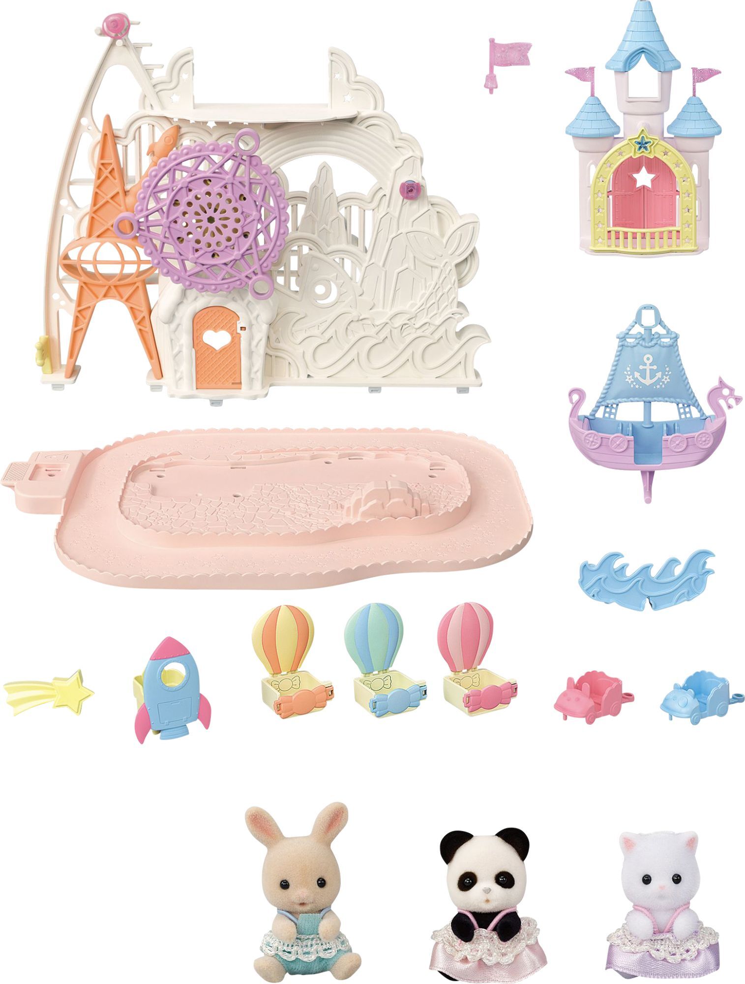 Sylvanian Families 5537 Baby Freizeitpark Im Sylvanian Families Freizeitpark können die Babies richtig viel erleben. Es gibt verschiedene Fahrgeschäfte, in denen die Babies großen Spaß haben. Rund um den Freizeitpark gibt es eine kleine Straße, auf der die Min...