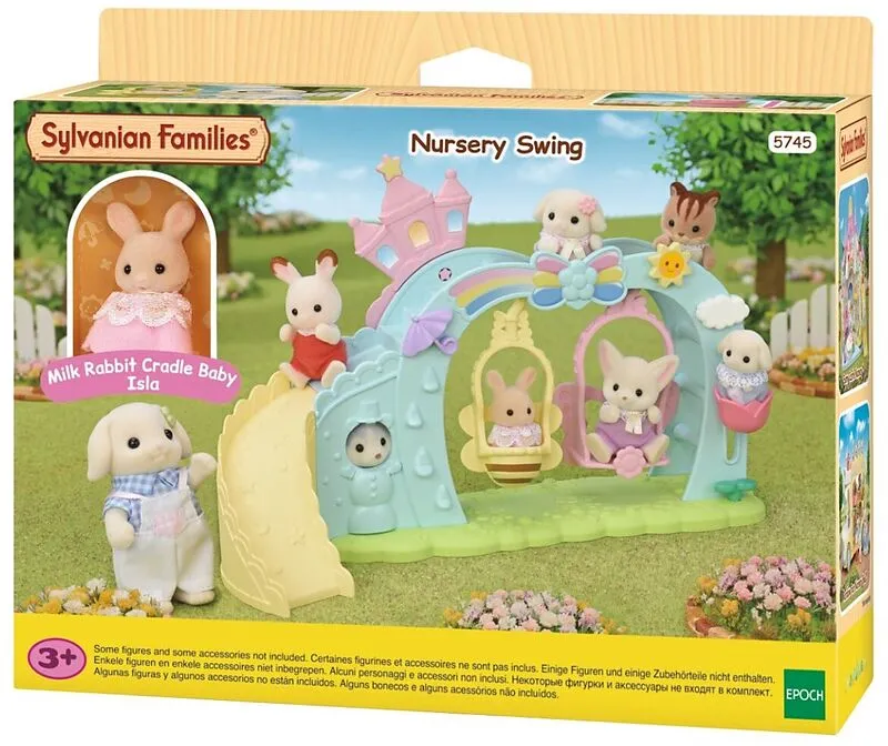 Sylvanian Families 5745 Erlebniskindergarten Schaukel mit Figur Was für ein Spaß für die Babys im Sylvanian Families Schaukel Spielset! Die zwei Schaukeln haben die Optik eines Schmetterlings und einer Biene. Außerdem gibt es einen kleinen Blumenaufzug, mit de...