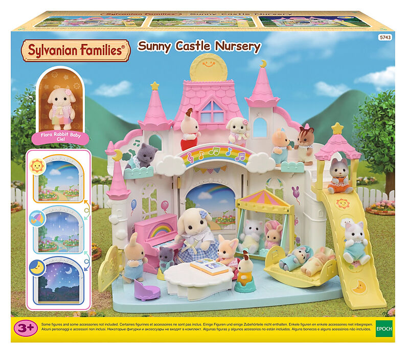 Sylvanian Families 5743 Erlebniskindergarten Sonnenschloss Im Sylvanian Families Erlebniskindergarten ''Sonnenschloss'' erleben die kleinen Babys eine Menge Spielspaß. Blicken die Babys aus dem Fenster, sehen sie das Wetter. Die Hintergründe des Fensters könne...