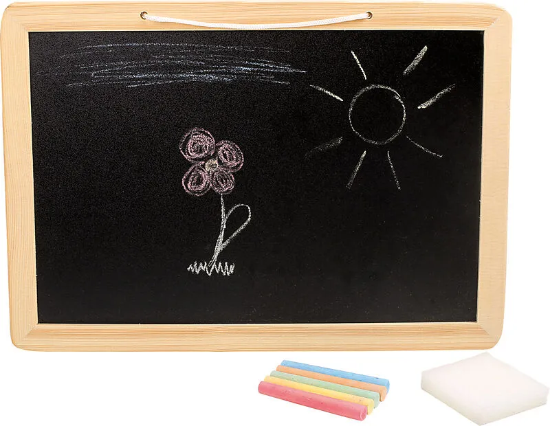 Klassische Kreidetafel im praktischen Format mit Holzrahmen Für kleine Notizen oder zum kreativen Malen dient diese nostalgische Tafel mit farbiger Kreide und einem Schwämmchen. Sie lässt sich wunderbar an einem dafür befestigten Band aufhängen. Kreidefläche o...