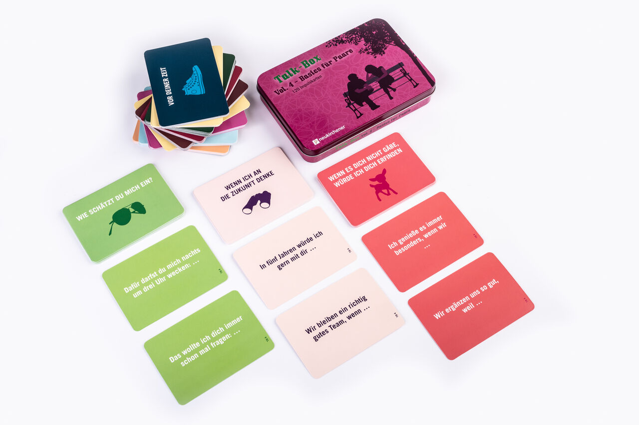 Kommen Sie ins Staunen darüber, wie vielschichtig der andere ist! Eine wahre Fundgrube für Paare, deren gemeinsamer Weg gerade erst begonnen hat. Die Talk-Box Vol. 4 Basics für Paare wendet sich an Paare, deren gemeinsame Geschichte noch kurz ist. Das können j...