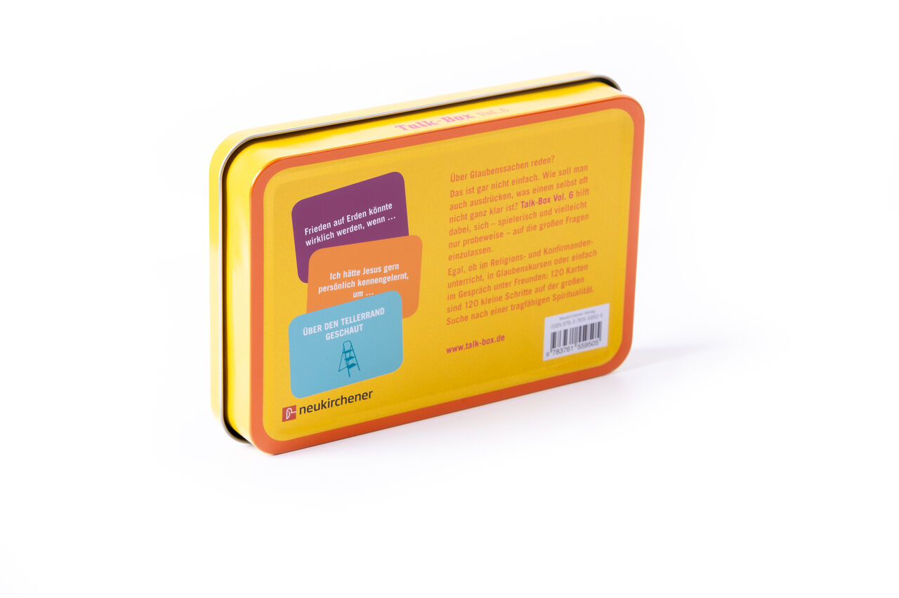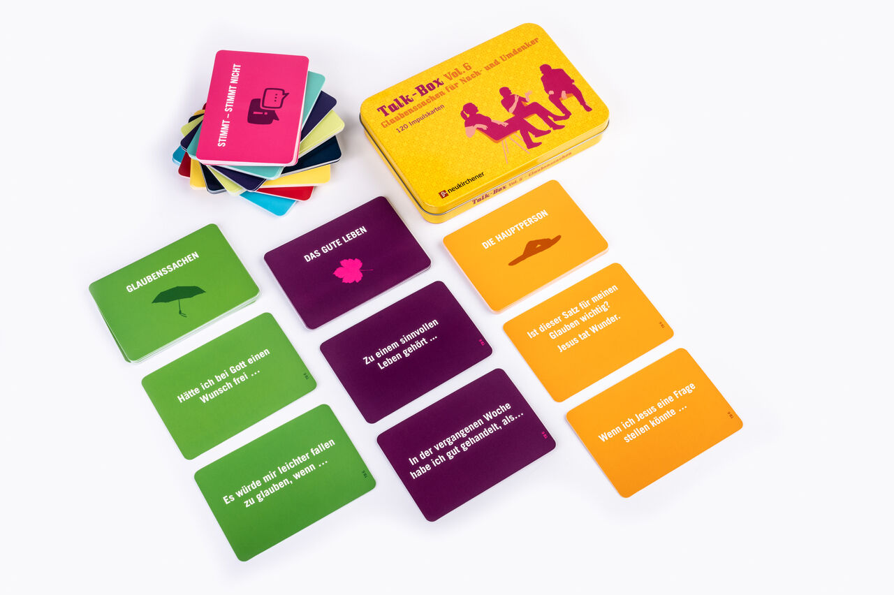 Über Glaubenssachen reden ist gar nicht so einfach. Wie soll man ausdrücken, was einem selbst oft nicht ganz klar ist? Diese Talk-Box hilft dabei, spielerisch ins Gespräch zu kommen. Egal, ob in Glaubenskursen, im Religions- und Konfirmandenunterricht oder ein...