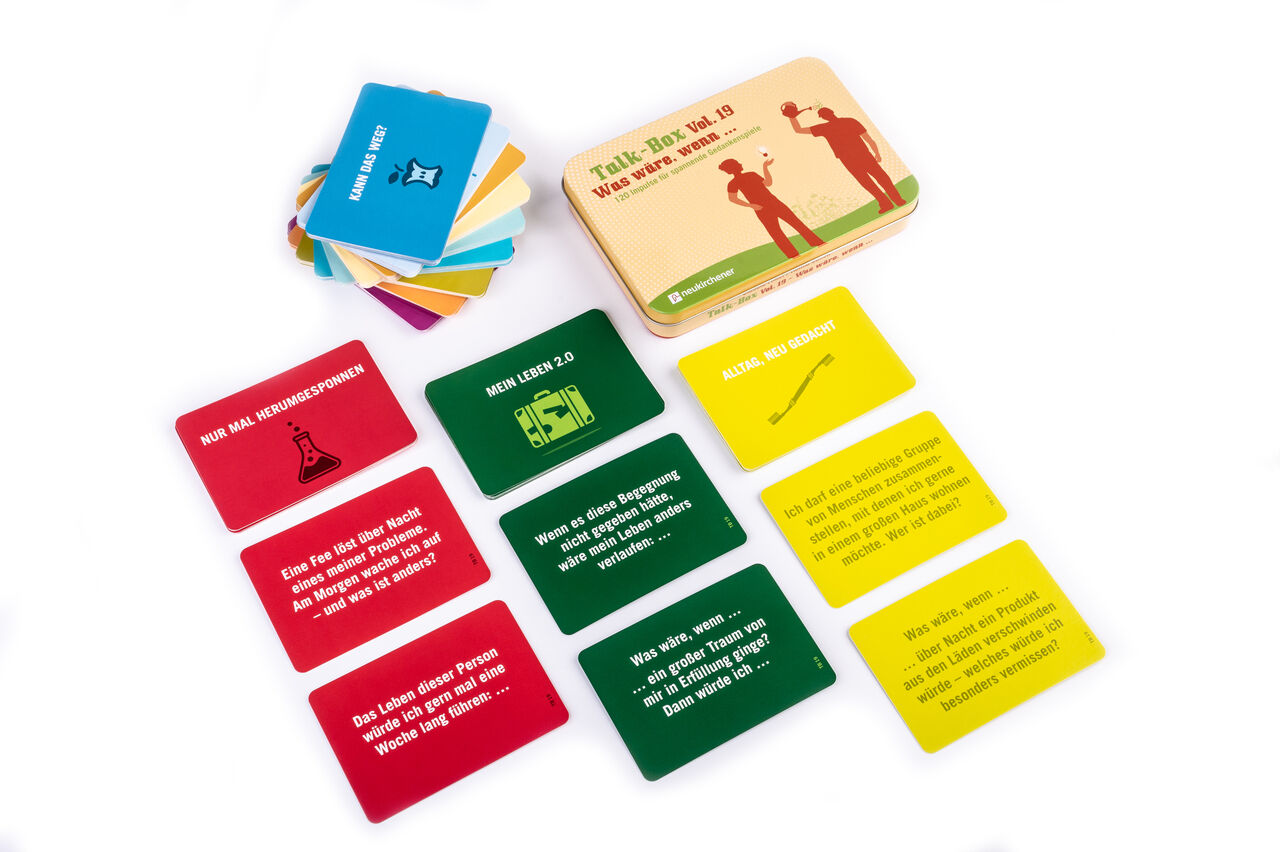 Einfach mal drauflosspinnen? Bei dieser Talk-Box wird spekuliert, was das Zeug hält: Was wäre, wenn ich mein Leben für drei Monate auf Probe ändern könnte? Oder wenn jeder Tag vier Stunden mehr hätte? Und was würde passieren, wenn ich die Gedanken Anderer lese...