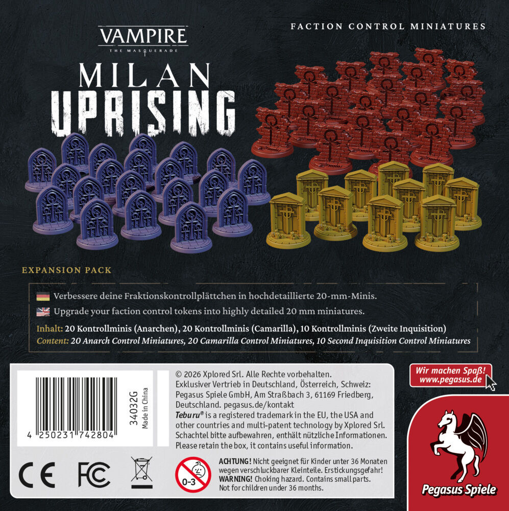 Verwandle die Fraktionskontrollplättchen in hochdetaillierte 20-mm-Minis. Dies ist ein Add-on, kein Grundspiel. Zum Spielen werden zusätzlich das Teburu Board sowie das Grundspiel Vampire: The Masquerade Milan Uprising benötigt. Außerdem ist eine kostenlose di...