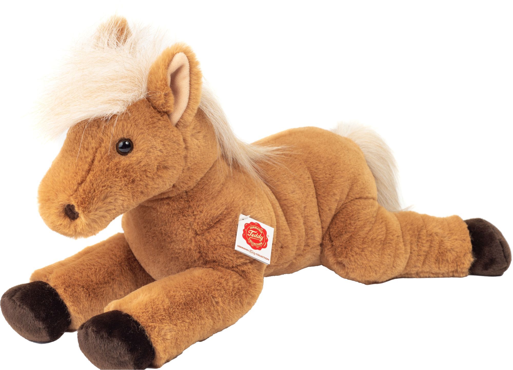 Weiches Pferd in liegender Pose, aus Plüsch in Premium-Qualität. Spielzeugsicherheit nimmt einen hohen Stellenwert bei Teddy-Hermann ein. Das Unternehmen legt großen Wert auf bedingungslose Sicherheit und Schadstofffreiheit. Alle Plüschspieltiere gehen durch s...