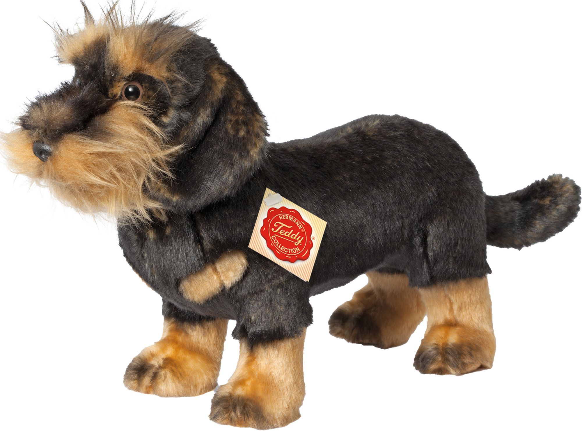 Rauhaardackel stehend. Gefertigt aus hochwertigem Plüsch und mit kuschelweicher Polyesterwatte gefüllt.